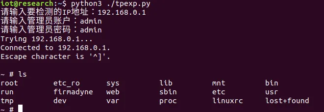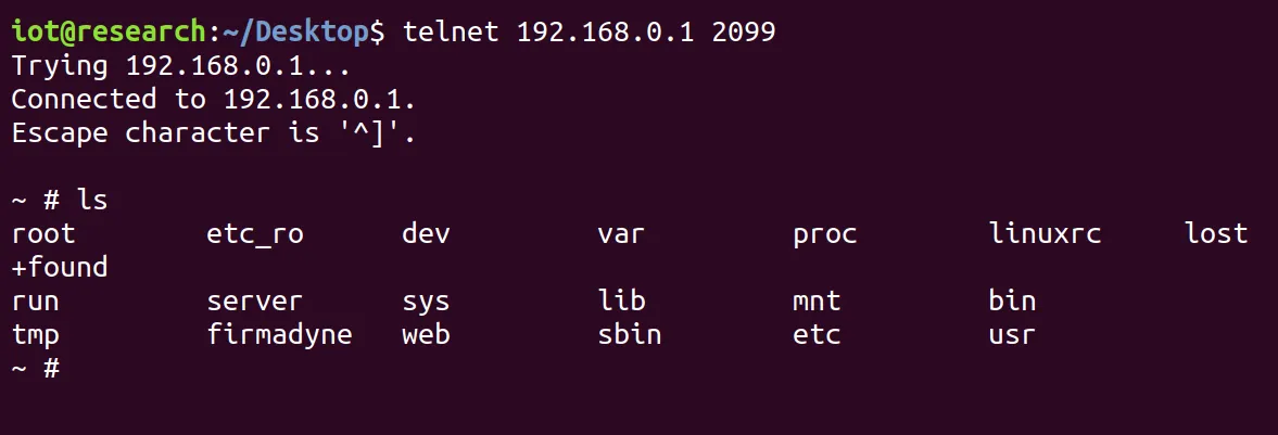 成功登录telnet,无需密码直接进入,而且权限是root权限