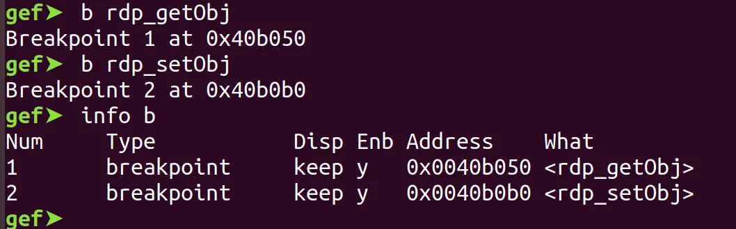 这里我们可以先在rdp_getObj,rdp_setObj设置相关断点,这些函数都位于动态链接库中,并且负责数据的获取和配置操作,也就是会对上述的payload_template中的数据进行处理