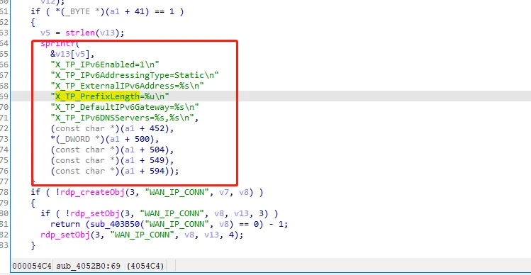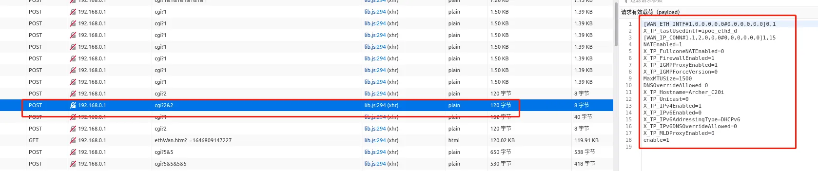 通过漏洞信息我们可以知道,此次的漏洞是WAN设置服务的命令执行,漏洞的位置是在设置网络相关参数的位置,具体的参数关键词是X_TP_ExternalIPv6Address,后端没有对其验证直接进行拼接了