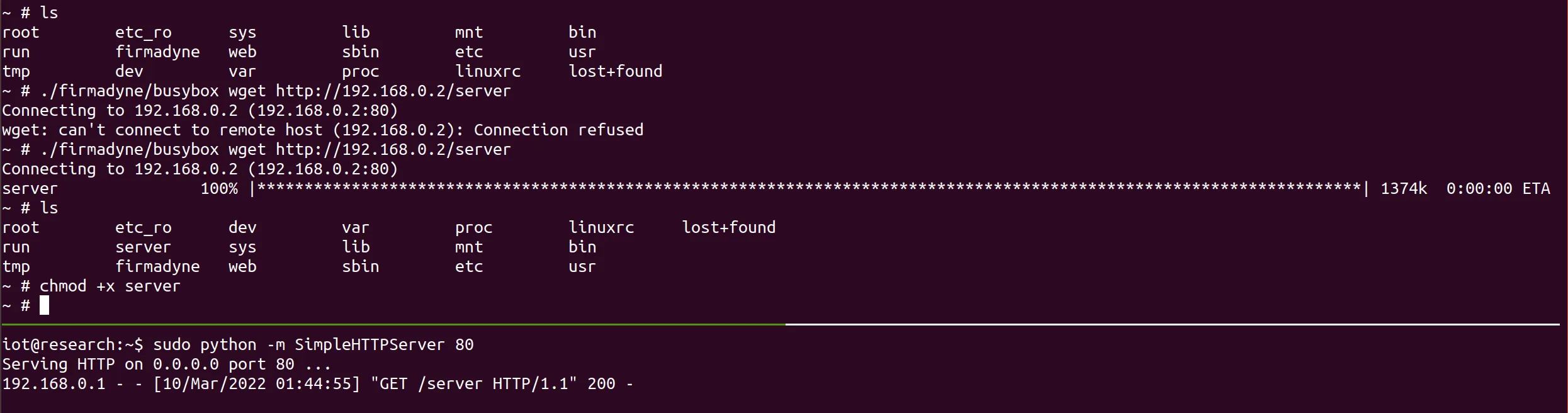 这里使用的是firmadyne文件夹下提供的busybox的wget命令进行下载gdb服务端程序