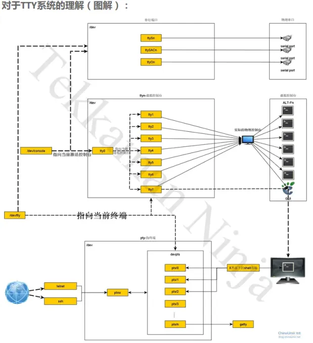 /dev/ttyN的大致工作原理如下: