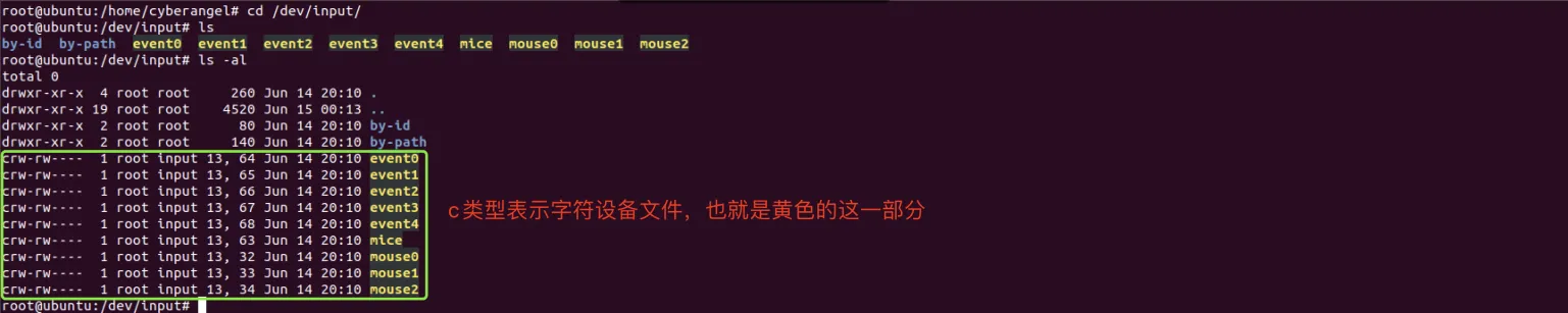 ubuntu 18.04中键盘与鼠标的字符设备文件如下所示: