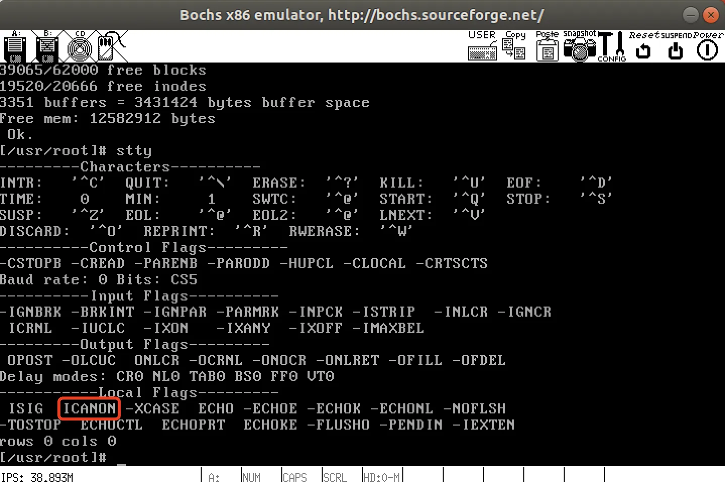 除了在现代Linux中执行stty,kernel 0.12也可: