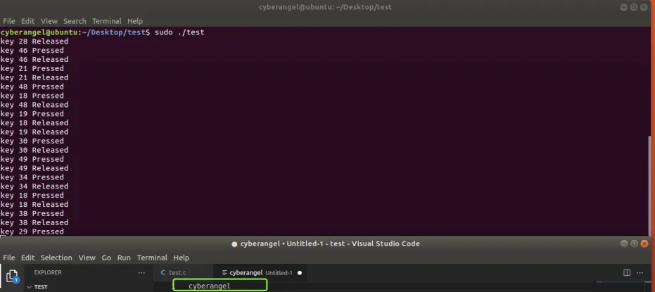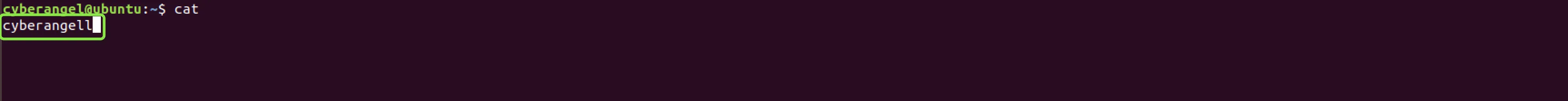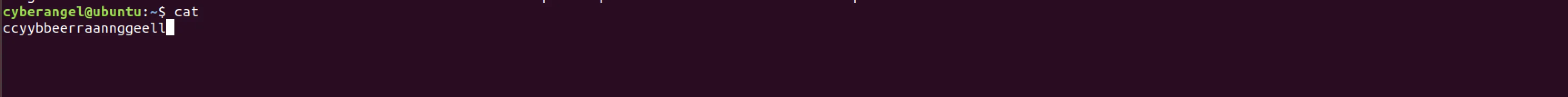 执行cat,依次输入cyberangel这10个字母: