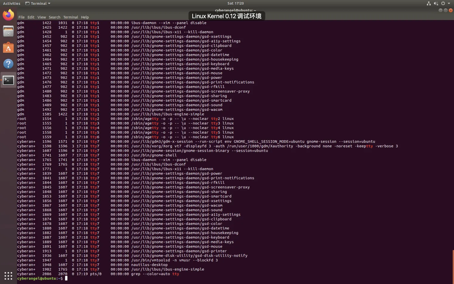 两部分gnome进程分别隶属于GDM和普通用户cyberangel