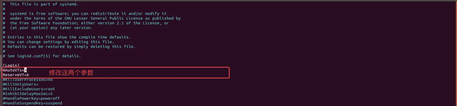 啊?为什么切换后只有一个光标在不断的闪烁,就像死机了一样?要想解决这个问题,需要了解一下配置文件/etc/systemd/logind.conf的两个参数:NAutoVTs和ReserveVT: