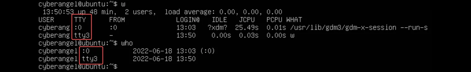 登录后可以使用who或w命令查看登录的用户: