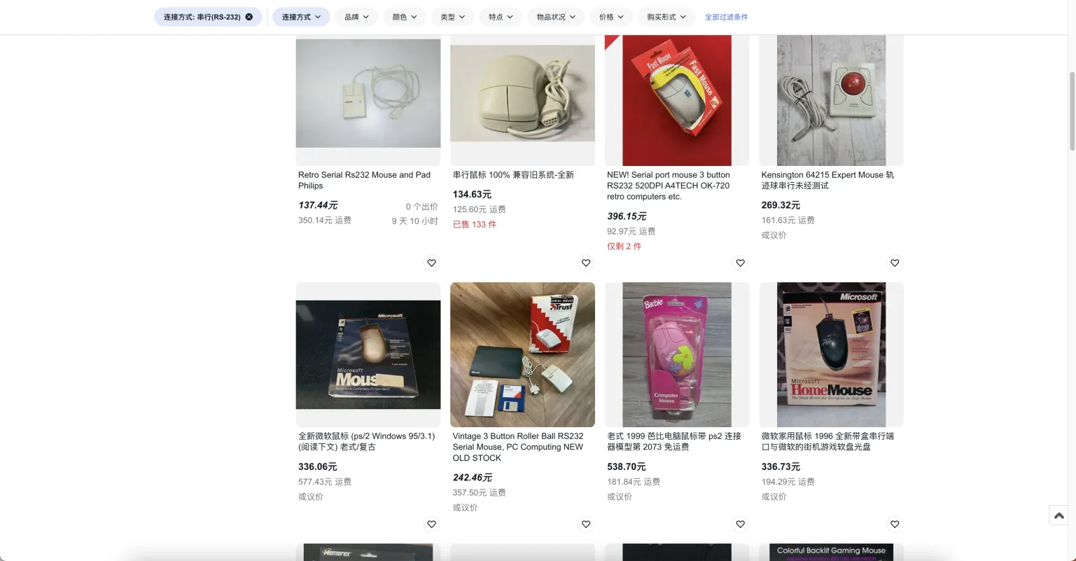 在ebay上仍可搜索到使用这种古老连接方式的鼠标和键盘: