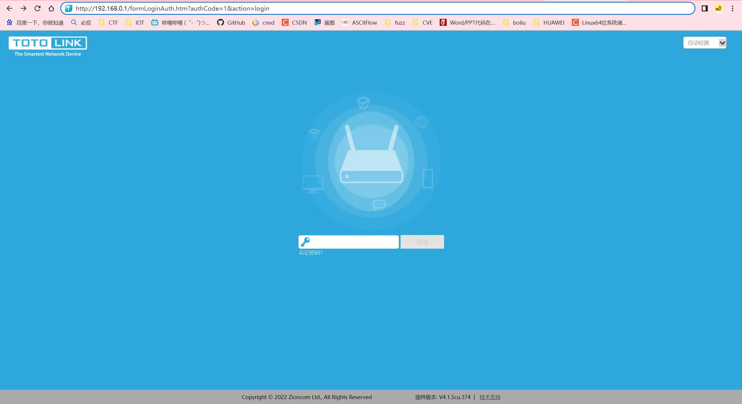 最近买了一个TOTOLINK 720R 玩玩,还没有登录之前想着看看能不能不用默认密码直接进后台,网上搜了一下发现TOTOLINK一系列路由器都存在一个未授权访问的漏洞,这里进行一波复现